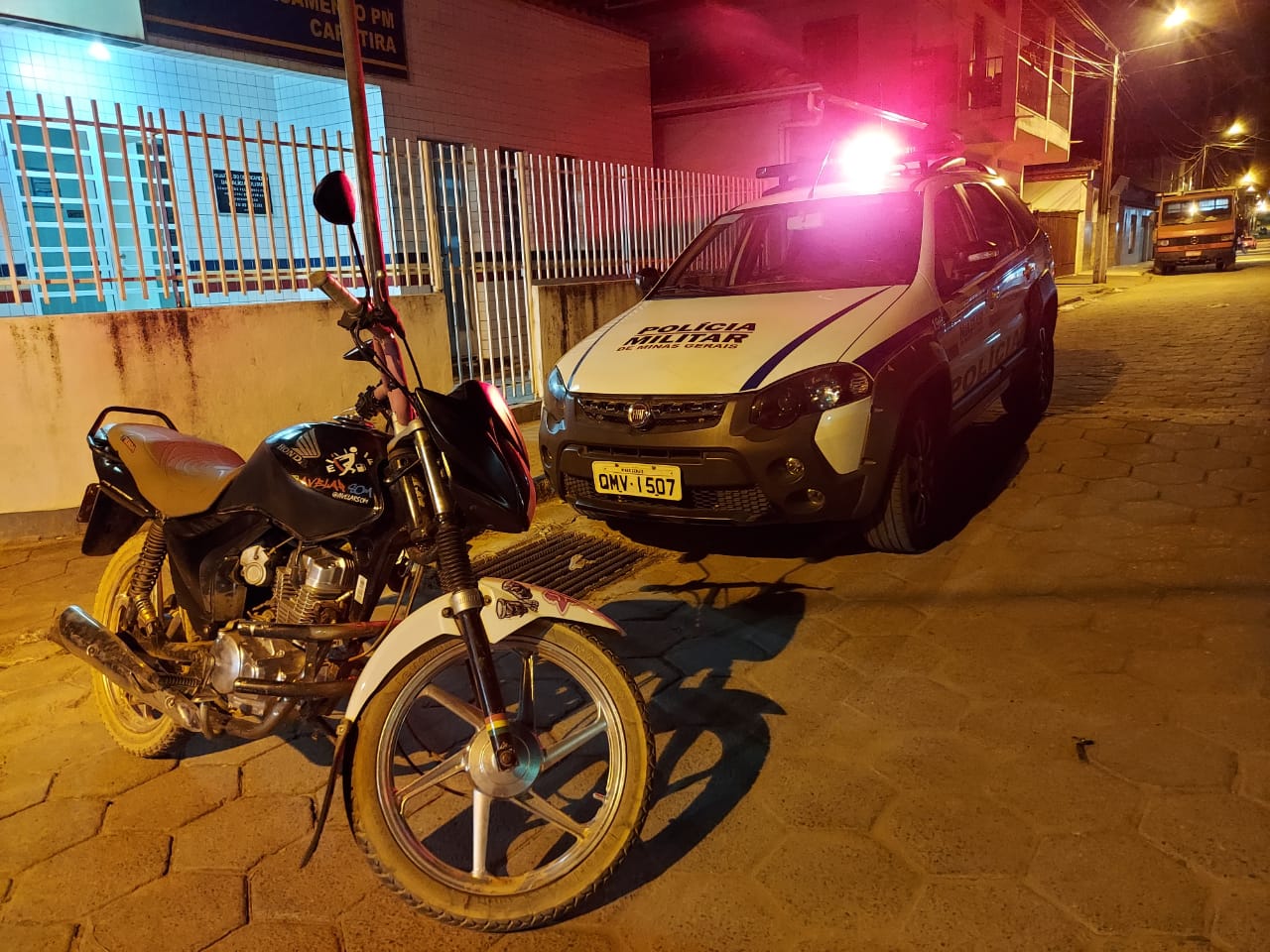 Só que ao ser realizada consulta ao sistema policial, foi detectada queixa de furto para o veículo, ocorrido no dia 31/07/2020 na cidade de Caratinga. O menor afirmou que pagou R$3.500,00 pela motocicleta.