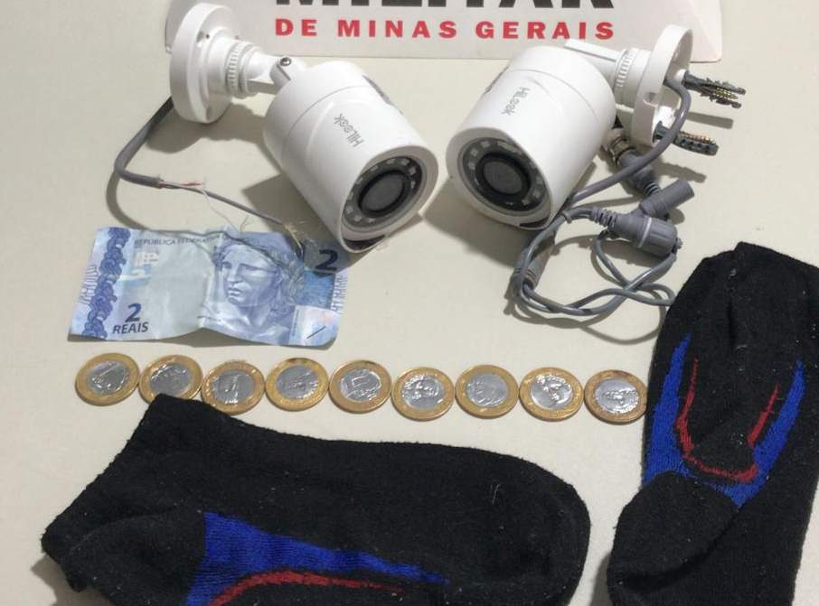 Furtaram 12 reais, em moedas e uma cédula de 2 reais, além de duas câmeras de monitoramento.