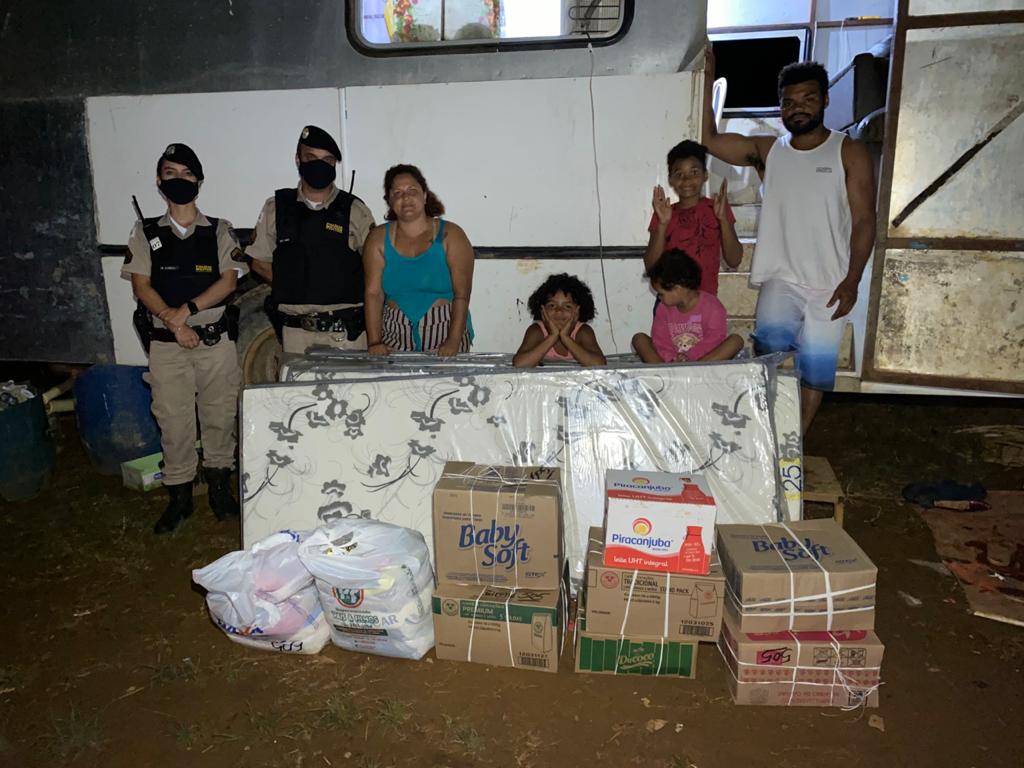 Comovidos com a situação, a equipe da Base Comunitária Móvel da PM realizou contatos com comerciantes e conseguiu arrecadar doações das cestas básicas, além de 05 colchões novos para a família.