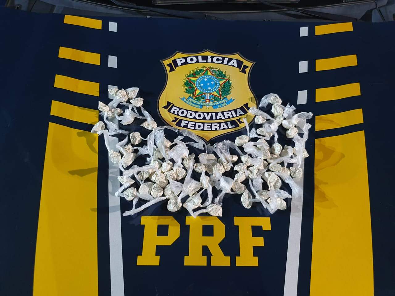 Em compartimento oculto no painel foram localizadas 71 porções de cocaína pesando aproximadamente 285g.