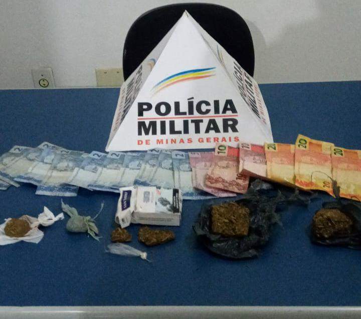 A PM flagrou o momento em que dois indivíduos adquiriram entorpecentes. Foram abordados. Um deles estava com uma pedra de crack e com o outro duas barras de maconha.