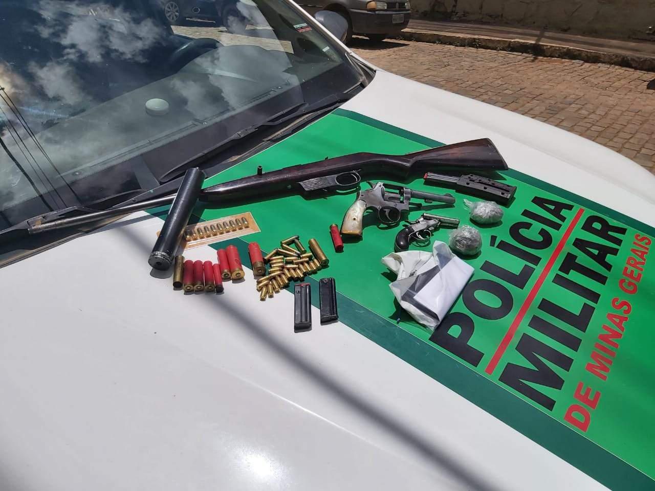 Em uma das residências, o morador de 67 anos possuía um revólver calibre 38, uma garrucha calibre 22 e uma espingarda calibre 22 com um silenciador acoplado. Os militares arrecadaram também 108 munições calibre 22, 30 munições calibre 380, 05 munições calibre 38, 05 munições calibre 28, 03 carregadores para a espingarda, além de 01 aparelho smartphone.
