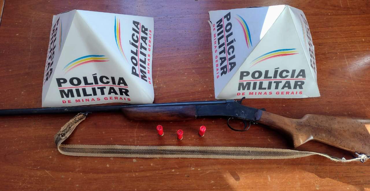 No local, foi feito contato com o morador, de 55 anos e, durante as buscas foi localizada 01arma de fogo, tipo espingarda, calibre 32 com coronha de madeira e 03 munições de mesmo calibre.