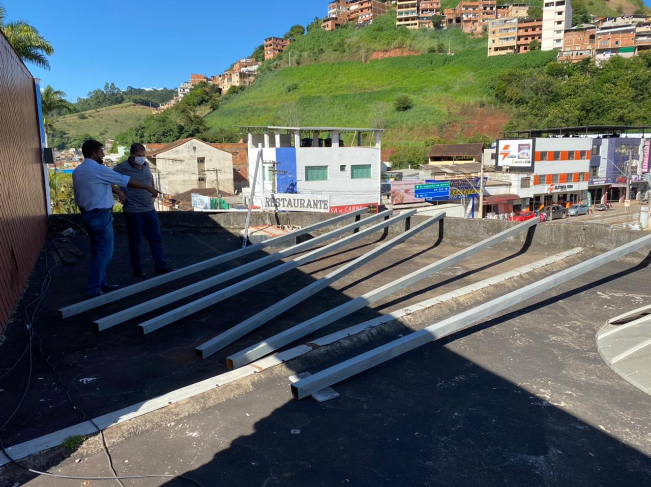 MANHUAÇU (MG) - O Presidente da Câmara de Manhuaçu, Cleber Benfica, comemorou, nesta quarta-feira, 24/02, mais uma conquista para a Rodoviária. Após diversas conversas com a Prefeita de Manhuaçu, Imaculada, e o Diretor da Rodoviária, Paulo Altino, o problema da infiltração está sendo resolvido com a instalação da cobertura metálica da edificação.