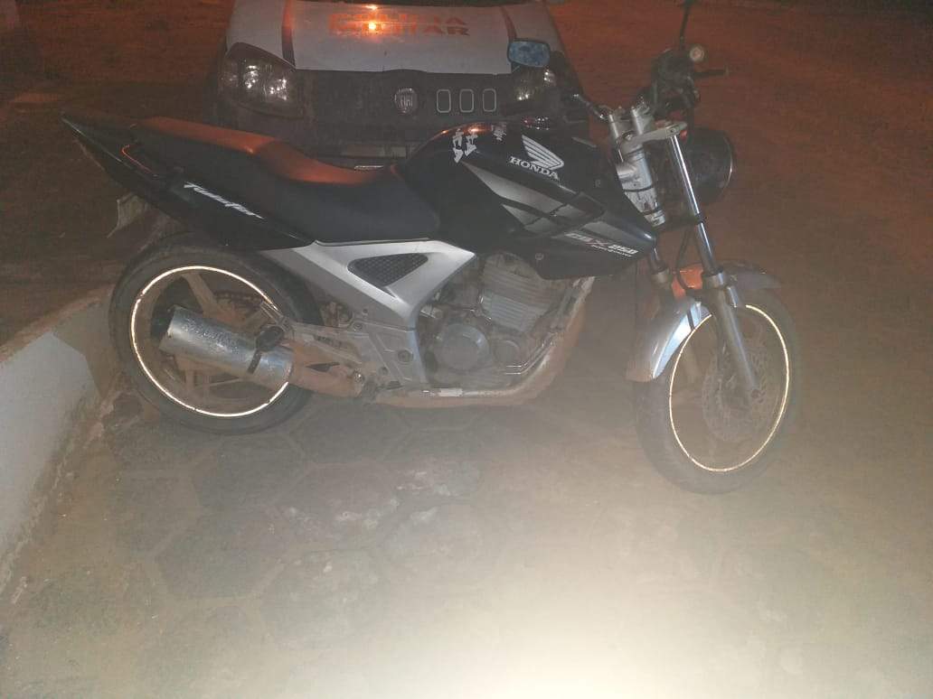 A equipe policial apurou que a motocicleta constava queixa de furto/roubo na cidade de Mutum/MG.