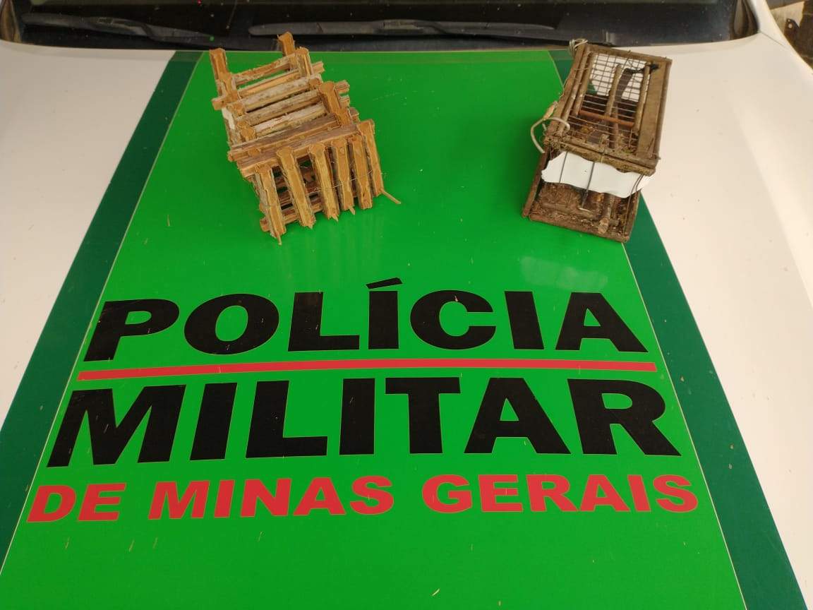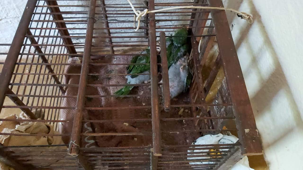 Militares do 3º Pelotão de Polícia Militar de Meio Ambiente deslocaram cedo para a região em cumprimento de mandados de busca e apreensão expedidos pelo Poder Judiciário. Durante as buscas nas residências os militares encontraram 03 filhotes de maritaca sendo mantidos em cativeiro em uma gaiola de madeira, sem água e sem comida. Ainda encontraram duas armadilhas para a captura de pássaros no habitat natural.