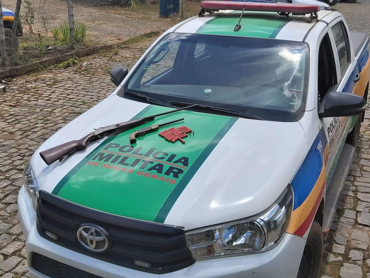 Em outra residência os policiais localizaram 01 garrucha e 01 espingarda calibre 36 e 29 cartuchos do calibre 36 e 02 do calibre .22. As armas estavam escondidas em uma garagem.