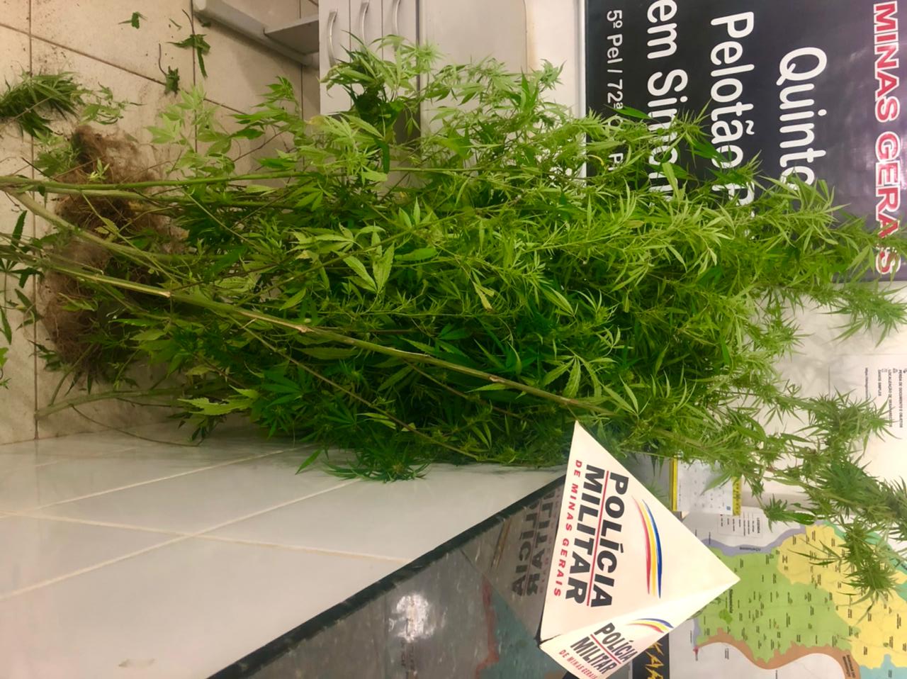 Os policiais foram até a propriedade rural. Depois de buscas intensas, localizaram cinco pés de maconha de aproximadamente dois metros de altura cada um.