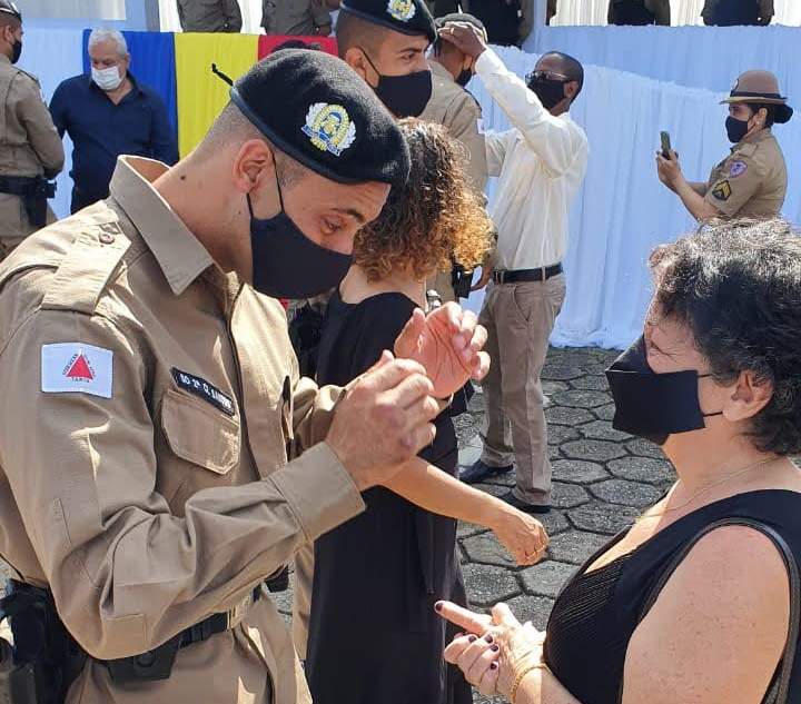 Após a entrega da boina pelos padrinhos, os discentes foram apresentados ao pavilhão Nacional e prestada a devida continência, como forma de respeito. Em seu discurso aos novos militares, o Coronel Rômulo, ressaltou as situações a que os militares estão expostos no trabalho diário, e como é importante o apoio da família.