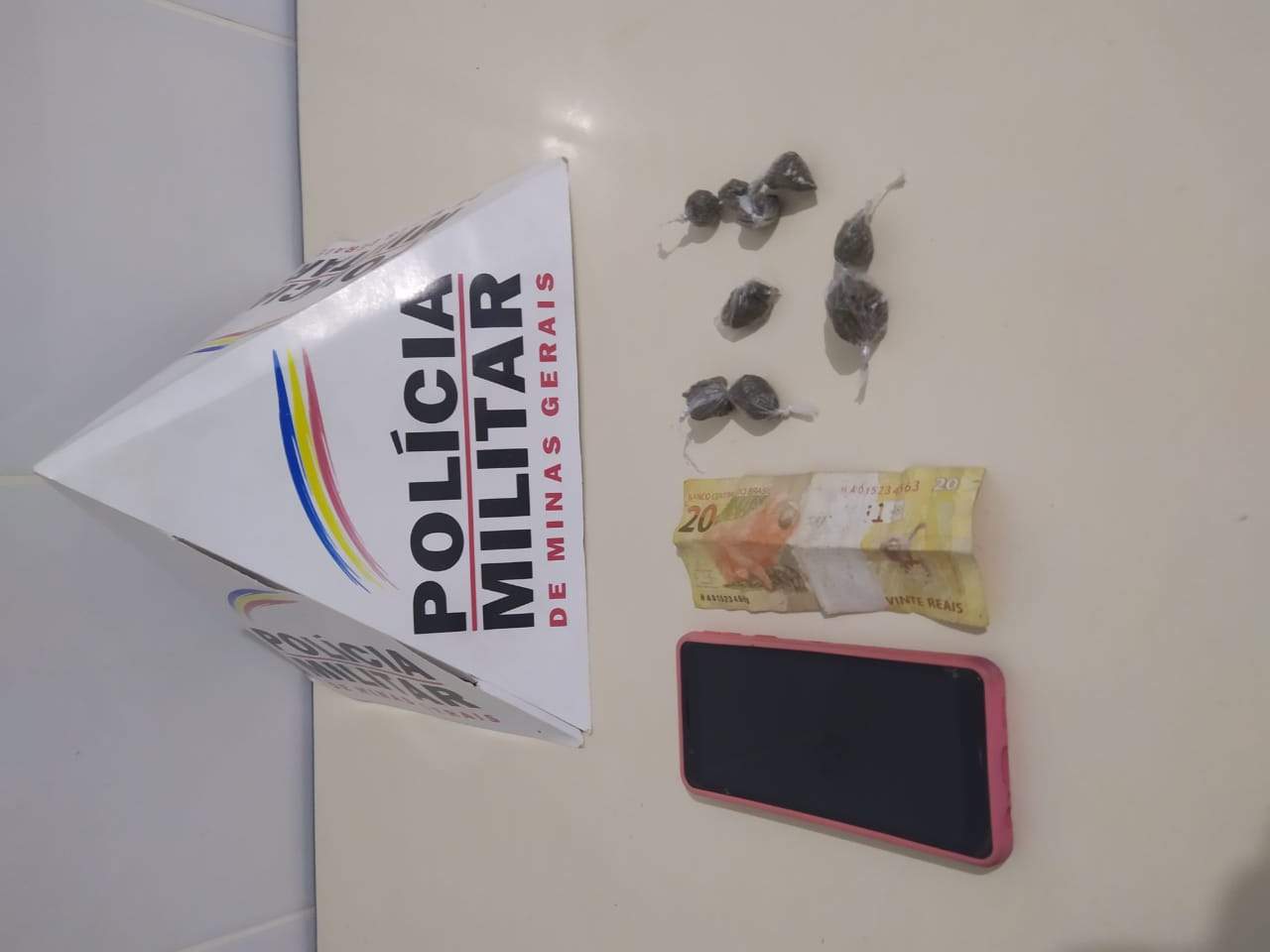 No local, o autor, ao avistar a viatura, tentou fugir e dispensou um invólucro, ele foi abordado e durante as buscas foram encontradas 09 buchas de maconha e R$20,00.
