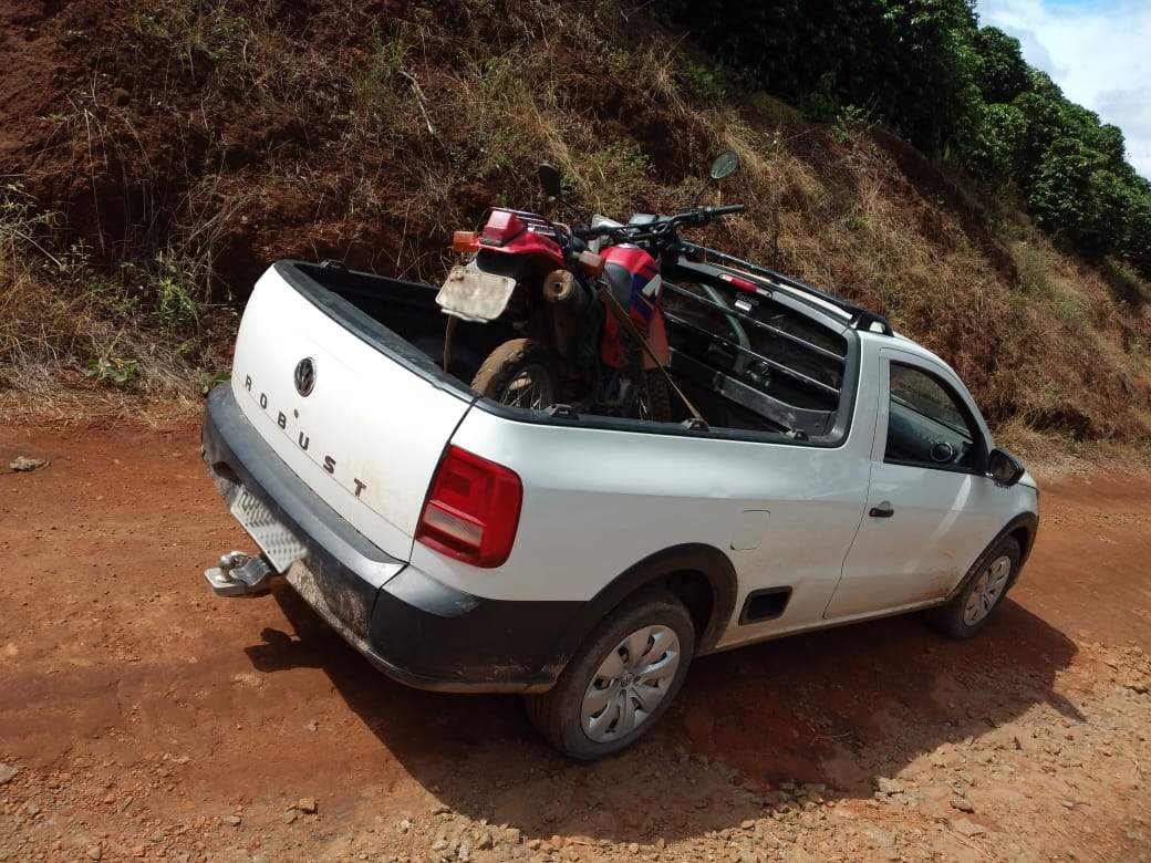 A motocicleta, Honda NX 200, cor vermelha, foi localizada pelos militares. Durante consulta ao sistema, foi constatado que o veículo havia sido furtado no dia 19/11/2020, em Santa Bárbara do Leste.