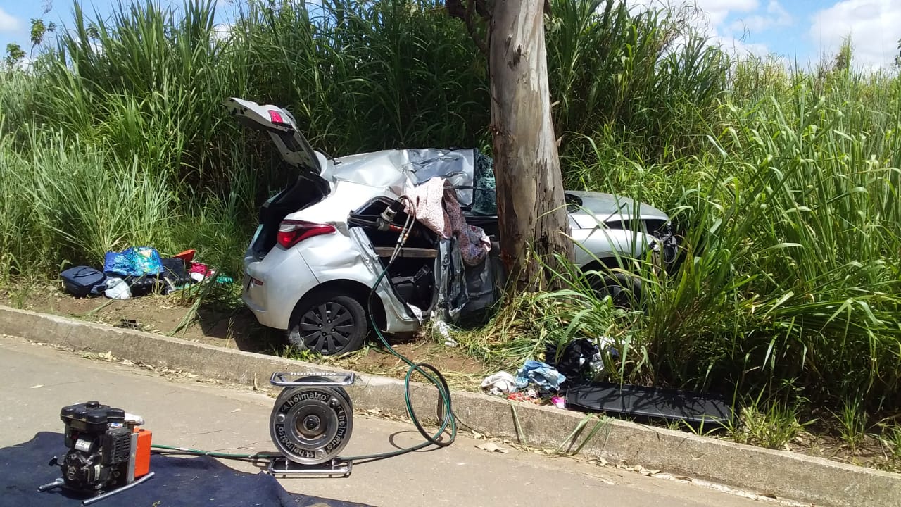 "Nós recebemos esse atendimento, via 193, por volta das 10h, e deslocamos para o local. Quando nós chegamos, tinham três vítimas dentro carro. Foi uma colisão de um veículo automotor numa árvore. Duas vítimas já se encontravam sem os sinais vitais e a vítima que estava no banco traseiro se encontrava presa, com os membros inferiores presos aos bancos. Nós tivemos que fazer o desencarceramento dessa vítima através de técnicas específicas,para que a gente pudesse resgatá-la. O estado dessa vítima: consciente, orientada e politraumatizada, com fratura bilateral de fêmur, e escoriações generalizadas", disse sargento Aline, do Corpo de Bombeiros.