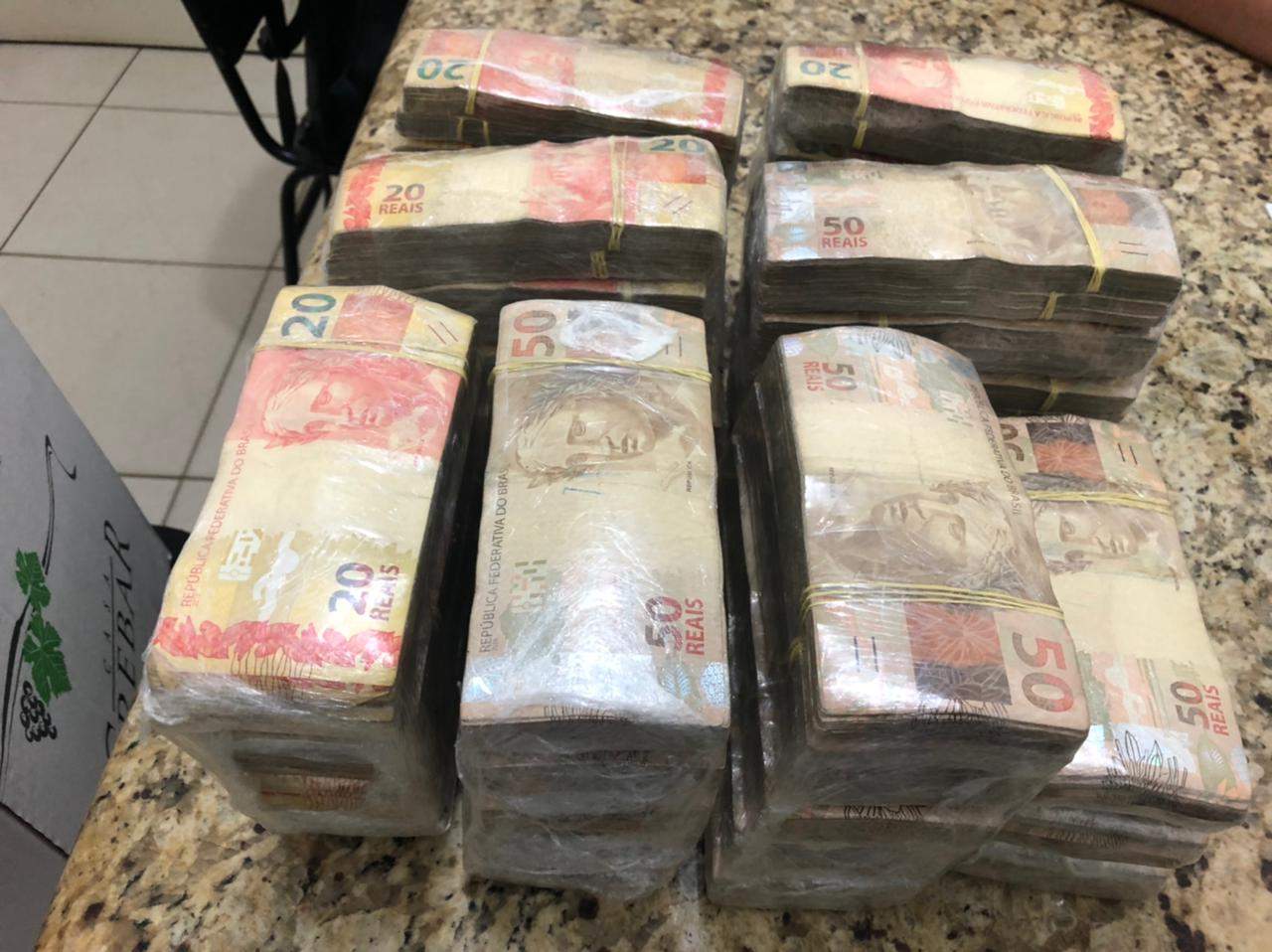 CARATINGA (MG) - O dinheiro apreendido estava em papel filme e dentro de uma caixa de papelão. As notas de R$ 20,00 e R$ 50,00 somam a quantia de R$260.040,00 (Duzentos e sessenta mil e quarenta reais). Durante a tarde desta quarta-feira, as polícias Militar e Civil concederam coletiva de imprensa explicando como foi realizada a condução do suspeito e apreensão da quantia de origem duvidosa.