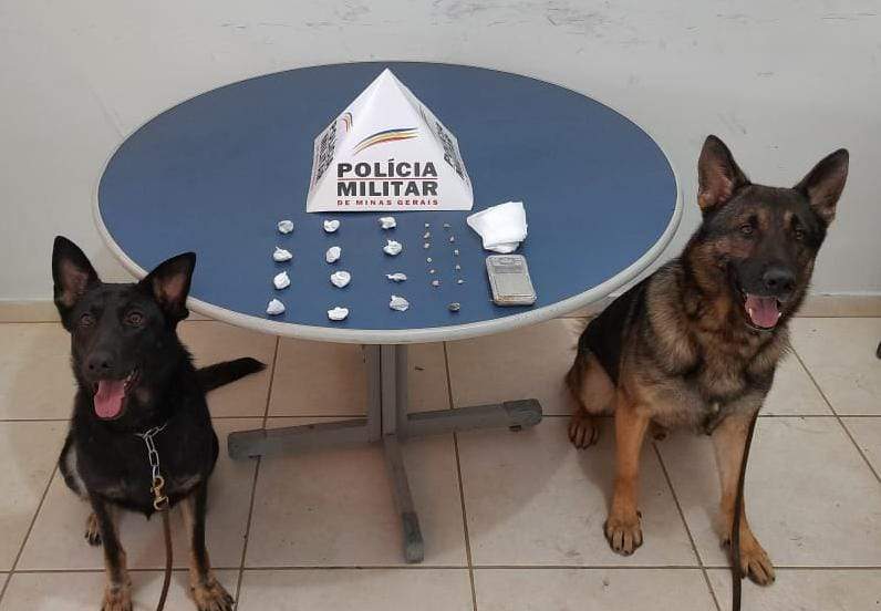 MANHUAÇU (MG) - Com apoio dos cães de faro, PM apreende drogas no bairro Nossa Senhora Aparecida.