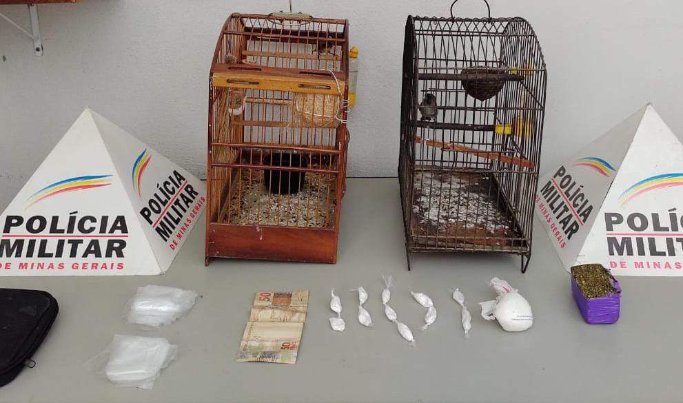Um rapaz denunciado negou possuir algo irregular em sua residência, só que, durante as buscas, foram encontradas uma barra de maconha, 11 papelotes e 01 porção de cocaína, além de 01 pássaro da fauna silvestre, R$90,00 e diversas embalagens para entorpecentes.