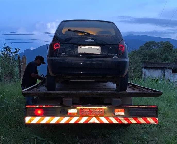 Durante operação batida policial, nesta terça-feira, 30, para localizar autores de roubo ocorrido na zona rural de Iúna/ES, equipe da Patrulha Rural da PMES deparou com o veículo Celta utilizado no roubo abandonado no pátio da torre, no córrego Barra do Cristal, já em Martins Soares, em Minas Gerais.