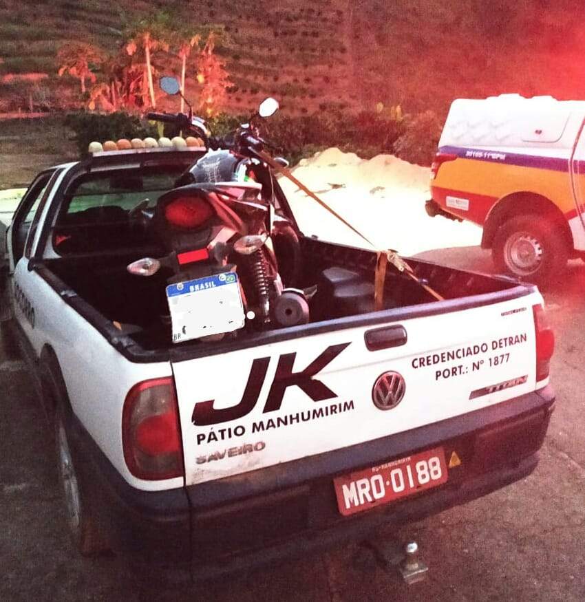 Na residência foi encontrada uma motocicleta Honda CG 160, cor preta, placa de Irupi/ES, que havia sido roubada dias antes, 02 celulares, 01 bucha de maconha e alguns pés de maconha.