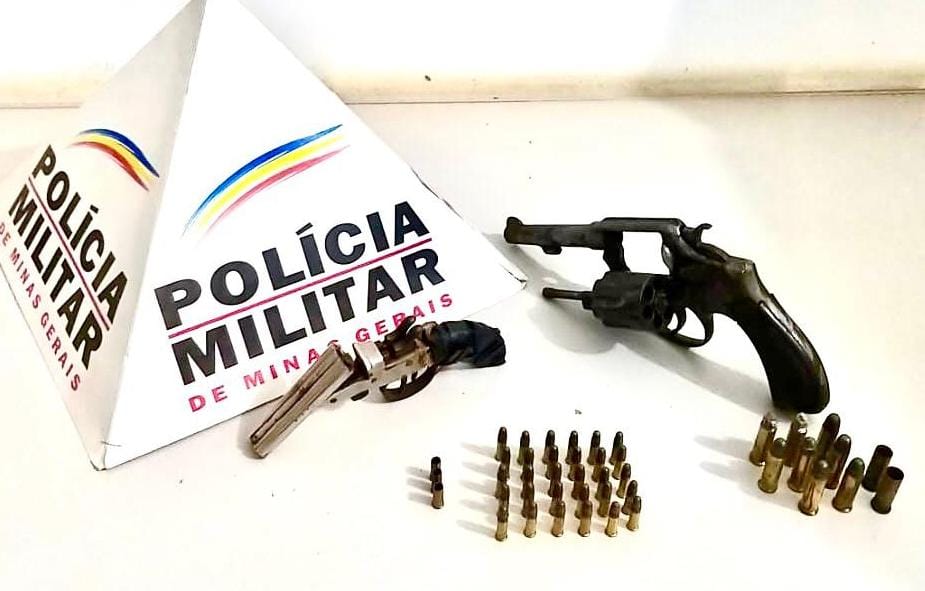 Durante as buscas, foi localizada uma mochila com duas armas de fogo: um revólver calibre 38 e uma garrucha calibre 22, além de várias munições.
