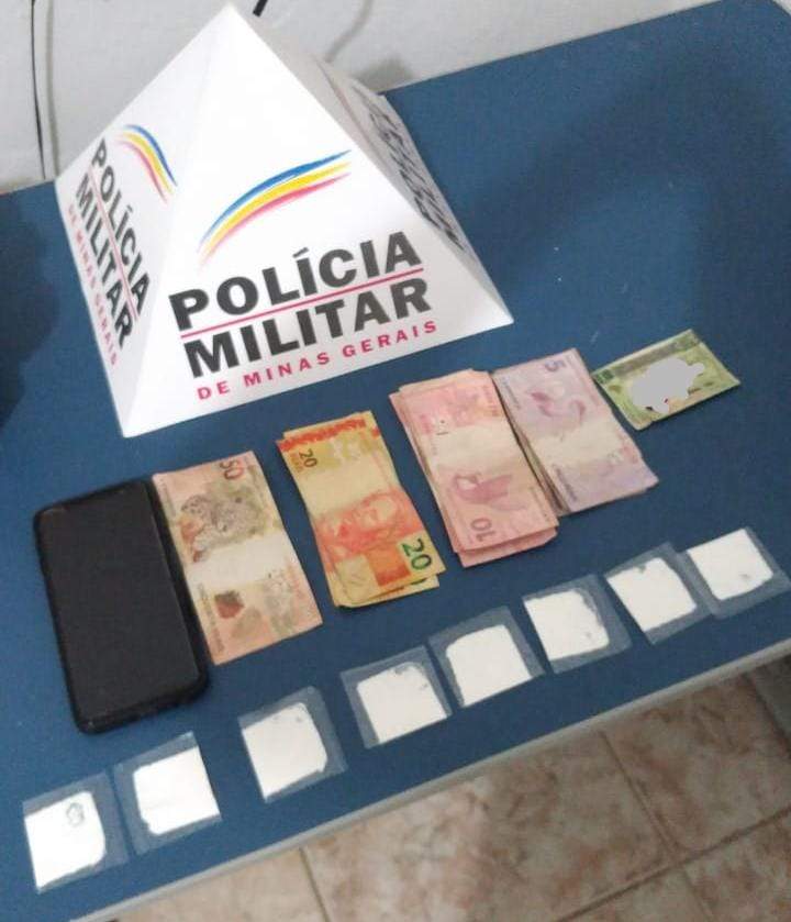 SÃO JOÃO DO MANHUAÇU (MG) - Policiais militares de São João do Manhuaçu prenderam autor de tráfico e apreenderam drogas na sexta-feira, 16/04.
