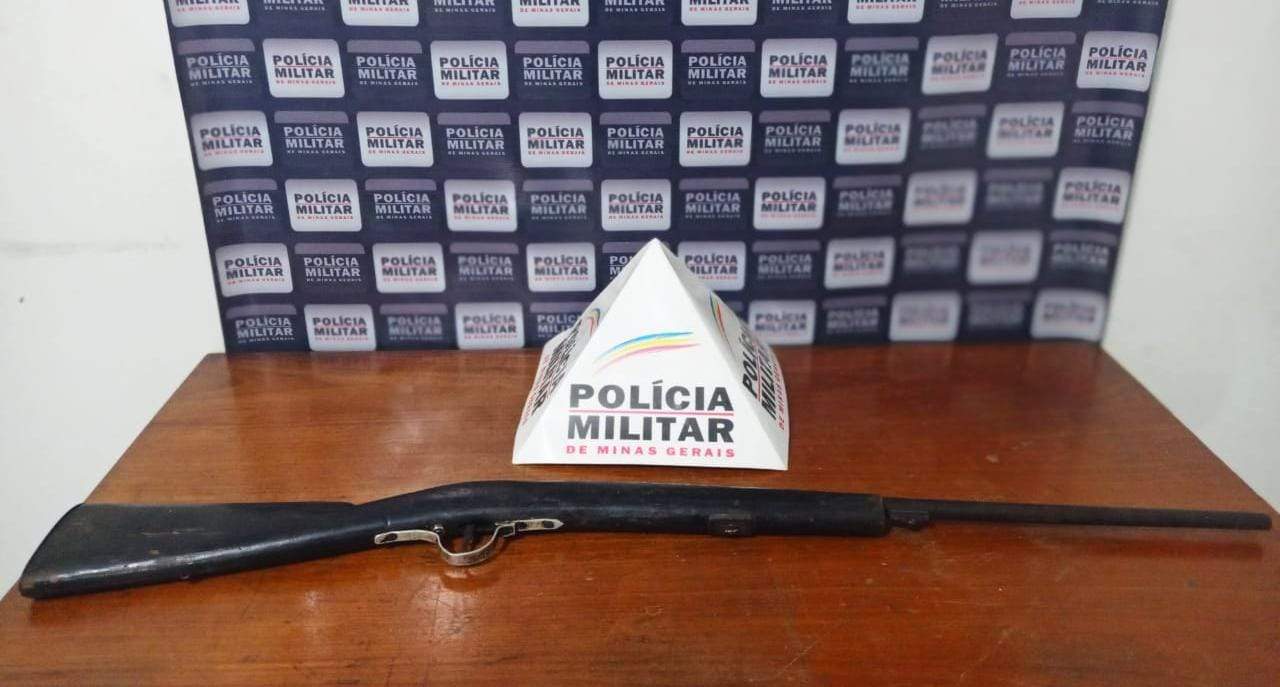 MANHUAÇU (MG) - Espingarda polveira foi apreendida pela Polícia Militar de Manhuaçu no córrego Maricá, na zona rural.