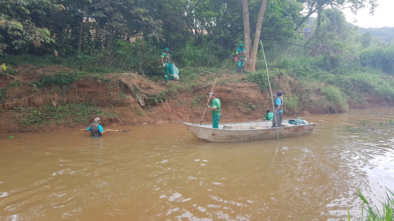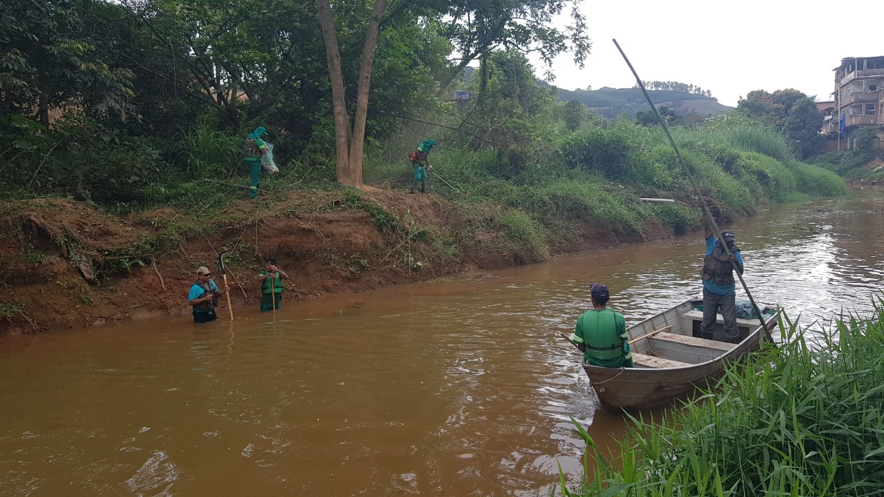 Além do SAMAL e Secretaria de Obras, os trabalhos de limpeza do Rio Manhuaçu contam o apoio do Corpo de Bombeiros com orientações sobre manuseio e o uso de EPI no trabalho com o emprego de embarcações.