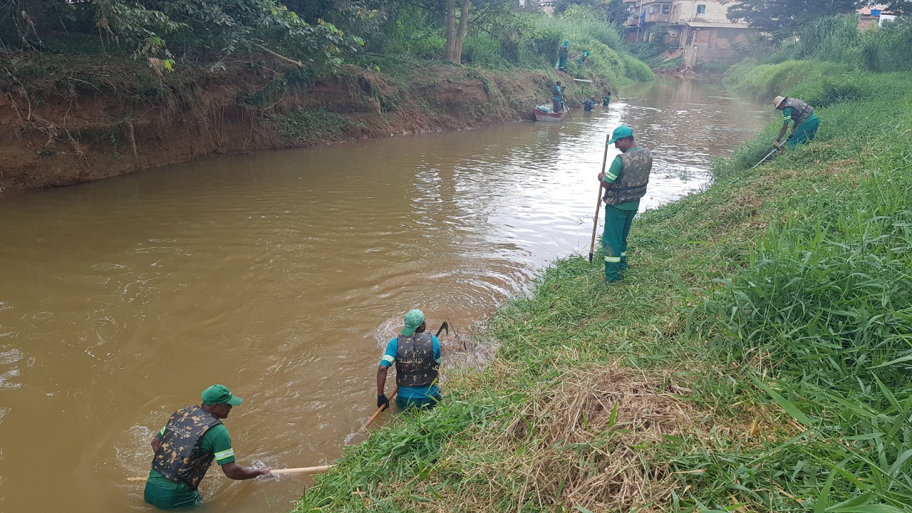 Iniciada no bairro Ponte da Aldeia, a equipe do SAMAL limpa as margens e desobstruem o leito, liberando o caminho das águas e minimizando riscos de inundação.
