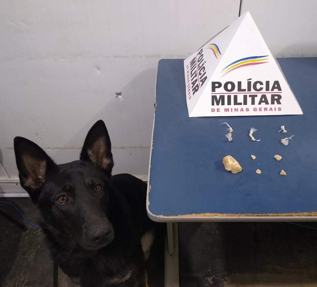 Foi realizada a aplicação da cadela de faro Kacau. Ela encontrou 13 pedras de crack, que foram apreendidas.