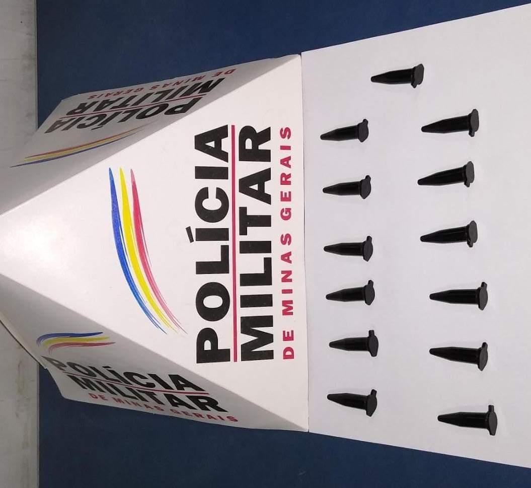 Durante busca pessoal no autor, foram localizados 13 pinos de cocaína no bolso da calça.