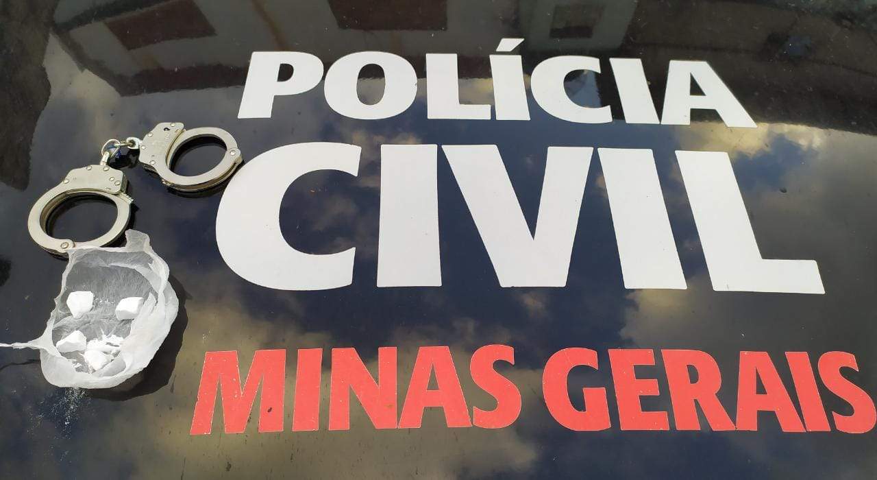 Durante a abordagem da equipe da Polícia Civil, foi encontrado com o autor um pequeno embrulho com papelote de cocaína. Ele assumiu que o entorpecente era para seu uso. A PCMG lavrou o procedimento legal a respeito dessa situação para encaminhamento para o Poder Judiciário.