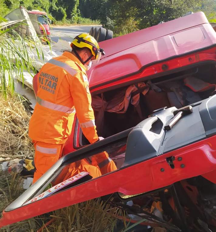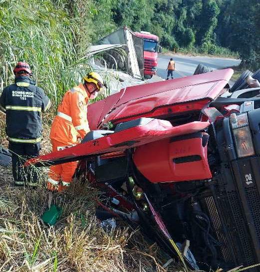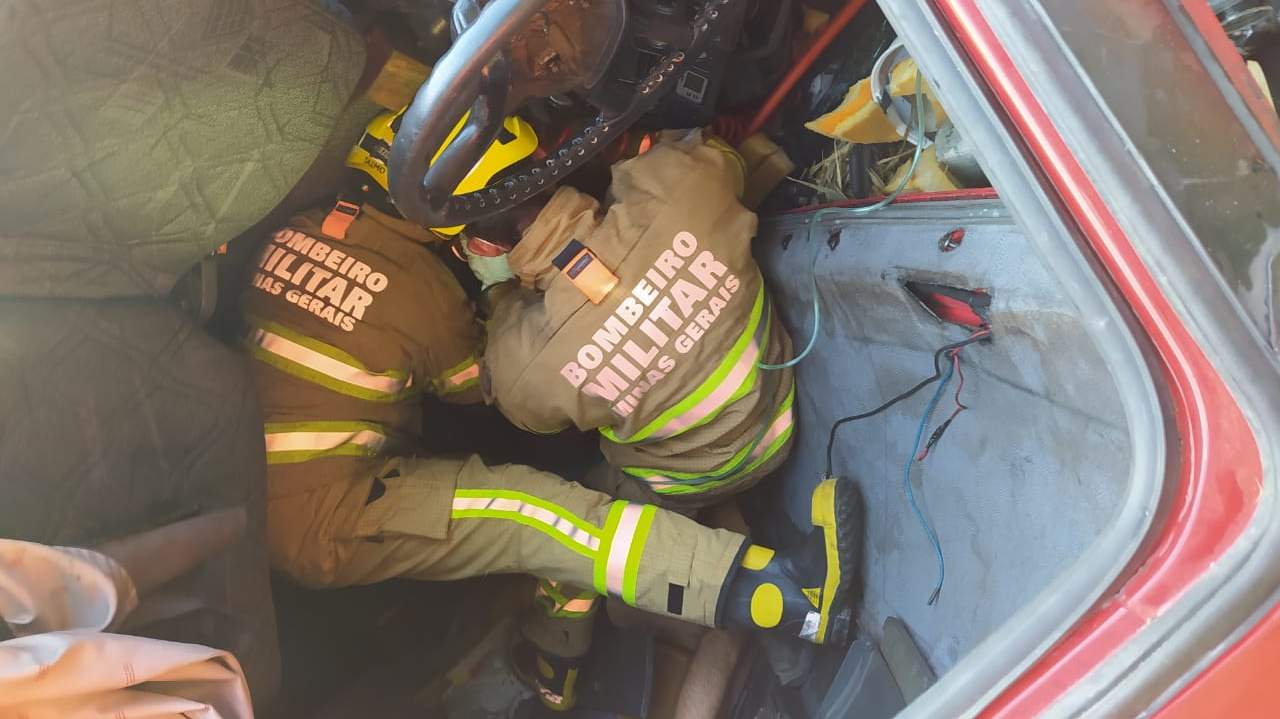 Durante o atendimento, o Corpo de Bombeiros constatou que a vítima estava com o braço esquerdo preso às ferragens sob a lateral da cabine, consciente e orientado queixando de fortes dores no tórax.