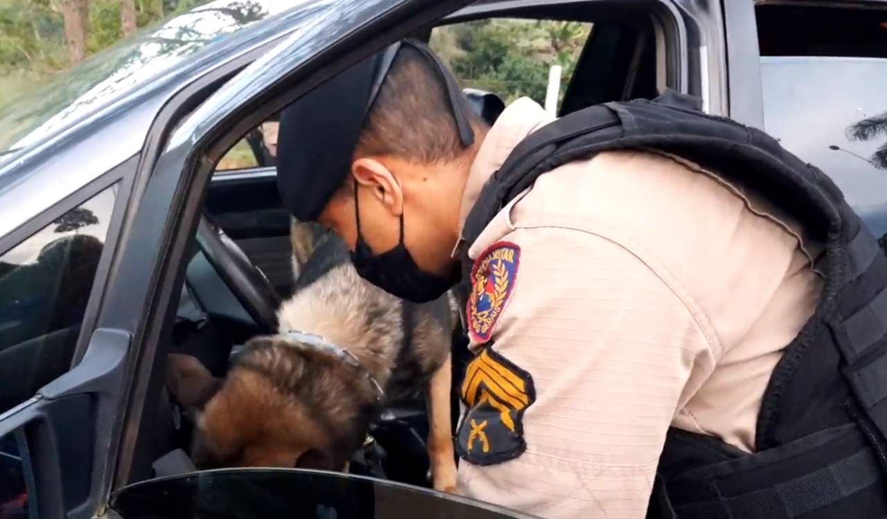 O emprego dos cães da Polícia Militar teve como objetivo encontrar armas e drogas nos veículos. “Durante a verificação de documentação dos veículos, condutores e passageiros, em alguns casos, os cães de faro do 11º Batalhão eram empregados nos veículos, principalmente coletivos e veículos de carga, afim de localizar drogas e armas de fogo”, explicou Sargento Robson, da Equipe ROCCA (Rondas com Cães) do 11º BPMMG.