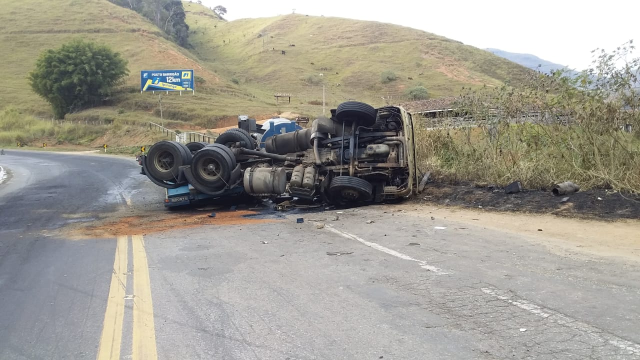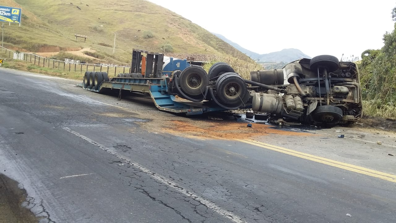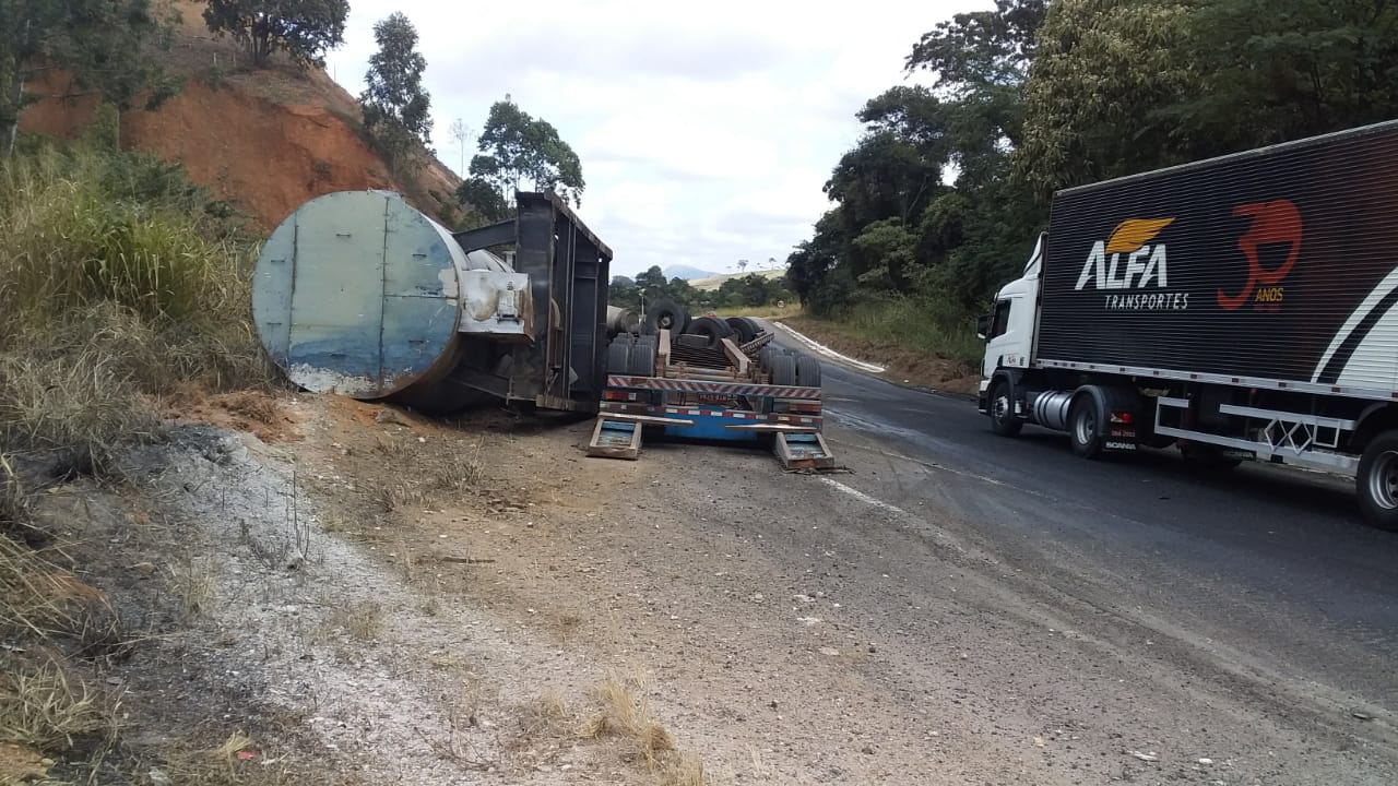 No km 63 da BR-262, próximo a curva da Saibreira, em Matipó, um caminhão prancha transportando um tanque de combustível vazio tombou. O motorista teve apenas escoriações leves e dispensou atendimento.