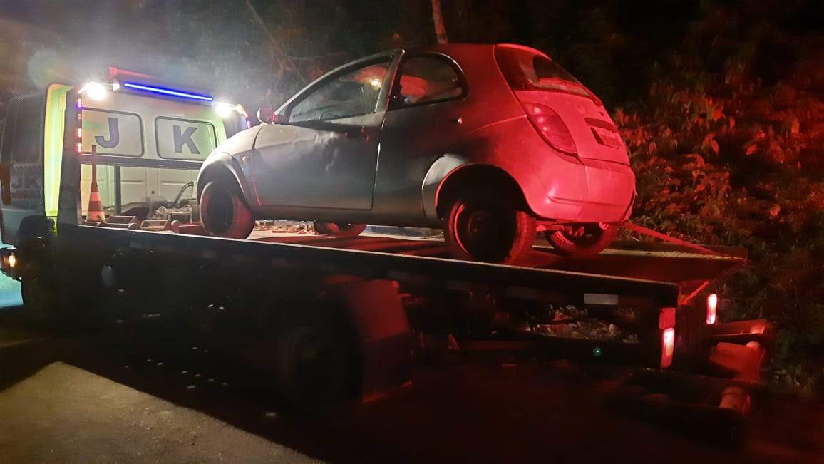 Durante retorno de Manhuaçu do flagrante de posse irregular de arma de fogo na madrugada de quarta-feira, 07, a equipe policial deparou com um veículo Ford Ka, com cinco ocupantes, sendo três homens e duas mulheres, parado as margens da rodovia MG-108 em situação suspeita.