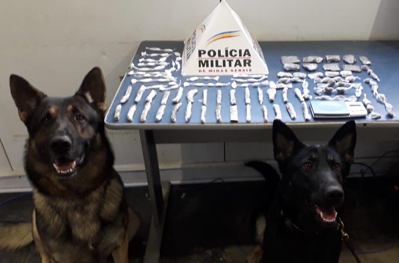 Foram localizados 52 papelotes de cocaína, 31 buchas e 43 tabletes de maconha e 01 balança de precisão.