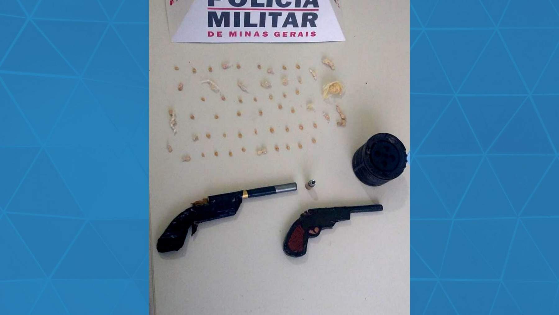 MANHUMIRIM (MG) - Drogas e réplicas de armas são apreendidas pela Polícia Militar no bairro Morada Nova, em Manhumirim, nesta terça, 13/07.