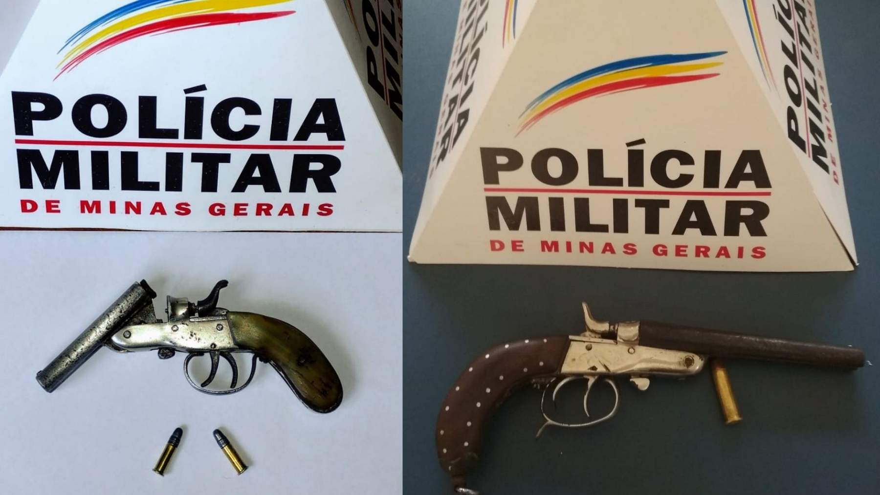 No primeiro caso, os militares receberam informações que um morador do córrego Lima estaria com arma de fogo de forma irregular em sua residência. No local fizeram contato com o denunciado e durante as buscas foram localizadas 01 arma de fogo, tipo garrucha, calibre 22 e 02 munições do mesmo calibre.