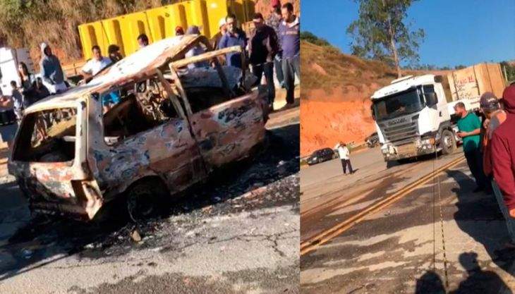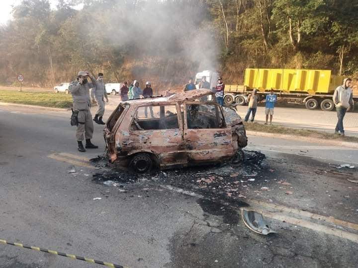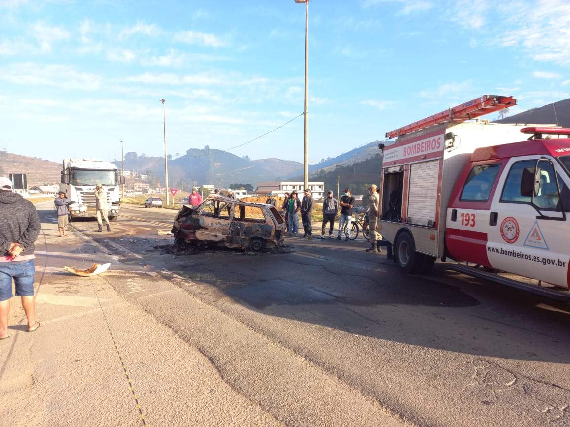 IBATIBA (ES) - Três pessoas morreram carbonizadas na manhã deste sábado (17), na BR 262, em Ibatiba, na Região Sul do Espírito Santo. O carro em que elas estavam pegou fogo após se envolver em um acidente com um caminhão, na altura do km 157, bem próximo à entrada da cidade.