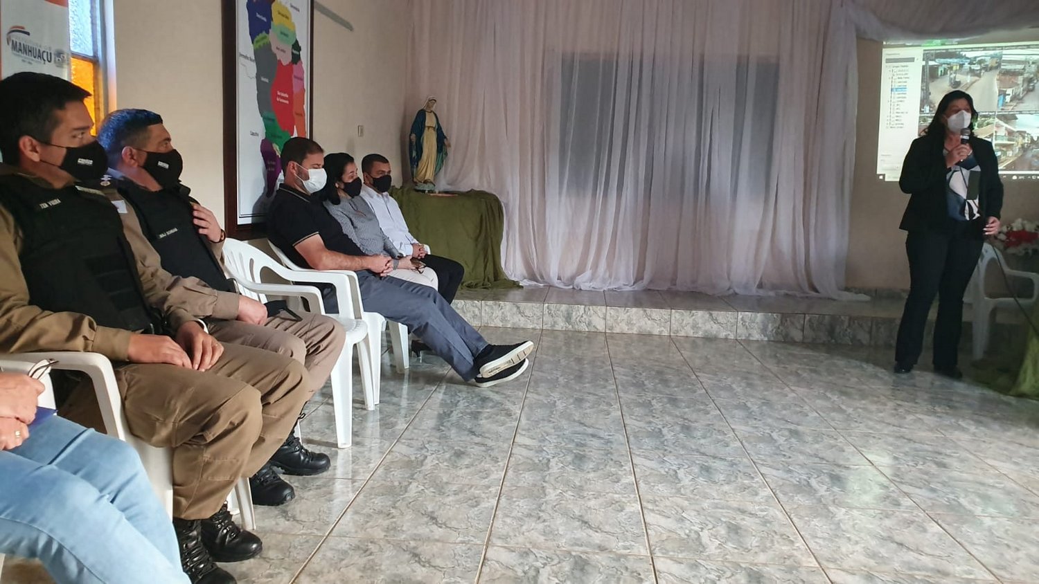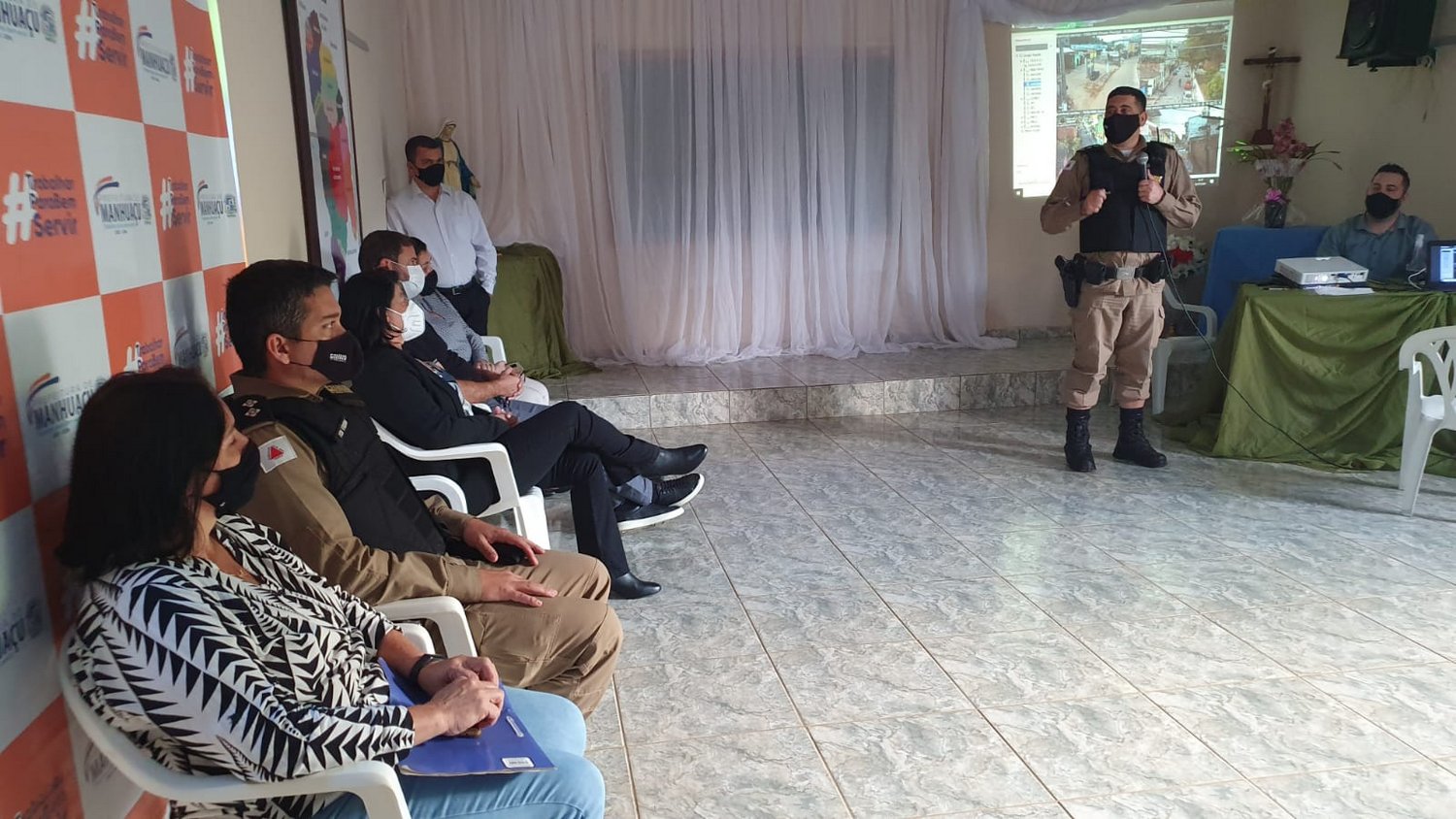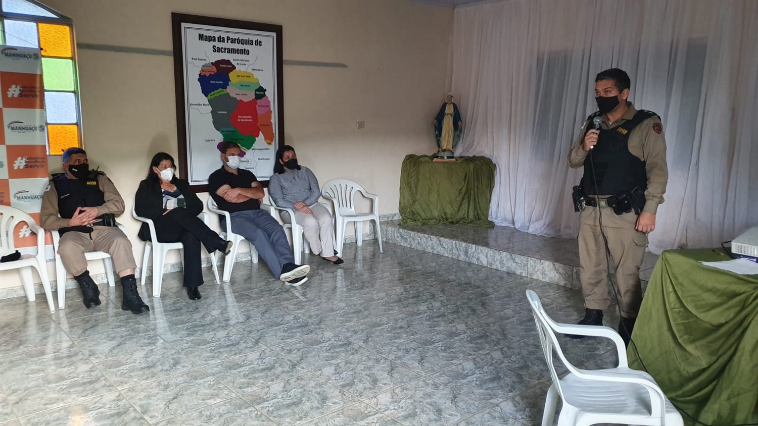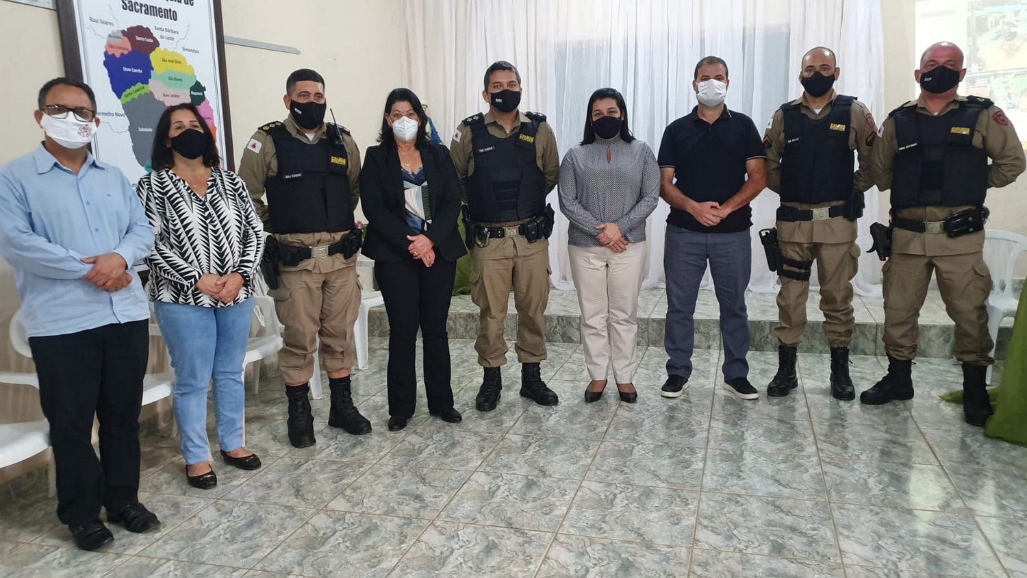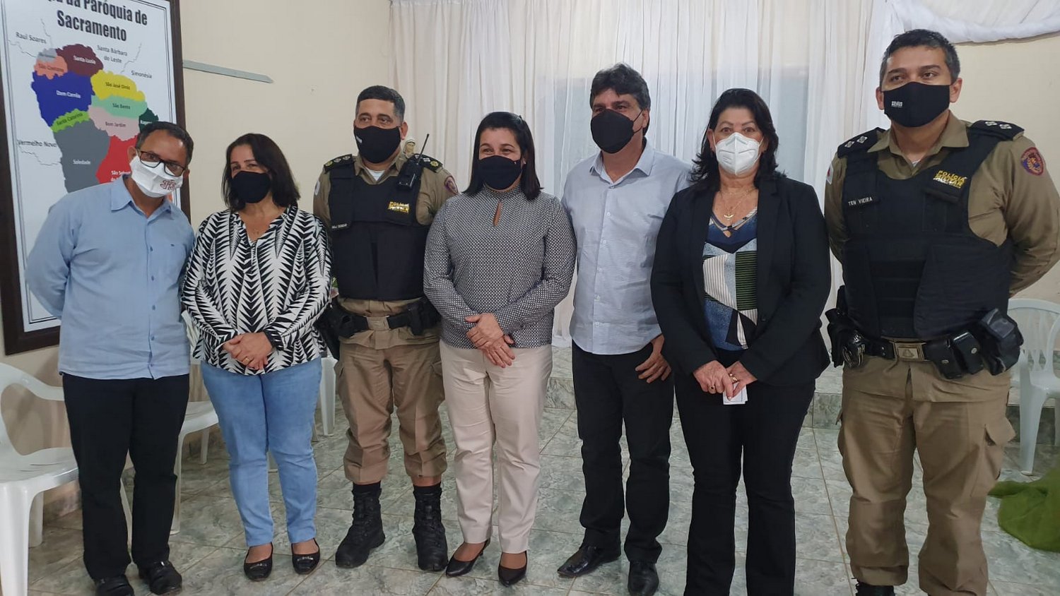 Diretamente envolvidos nos projetos, estiveram presentes: a Prefeita de Manhuaçu, Maria Imaculada Dutra Dornelas, o subcomandante do 11º Batalhão de Polícia Militar, Major Agnaldo de Souza Schuab, Presidente da Câmara de Vereadores de Manhuaçu, Cleber Benfica, Vereadora Mariley do Carmos Batista, Comandante do 4º Pelotão da 72ª Cia, com sede em Realeza, 1º Tenente Marcos Roberto Nunes Vieira, Padre Roberto Carlos, da Paróquia de São Sebastião do Sacramento, Presidente do Conselho de Desenvolvimento Comunitário de Sacramento, Maria Auxiliadora Batista Dutra, e demais membros da comunidade.