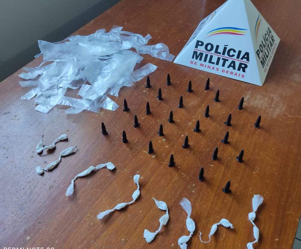 No local denunciado, foram localizadas 44 porções de cocaína, além de diversos materiais para embalar as drogas.