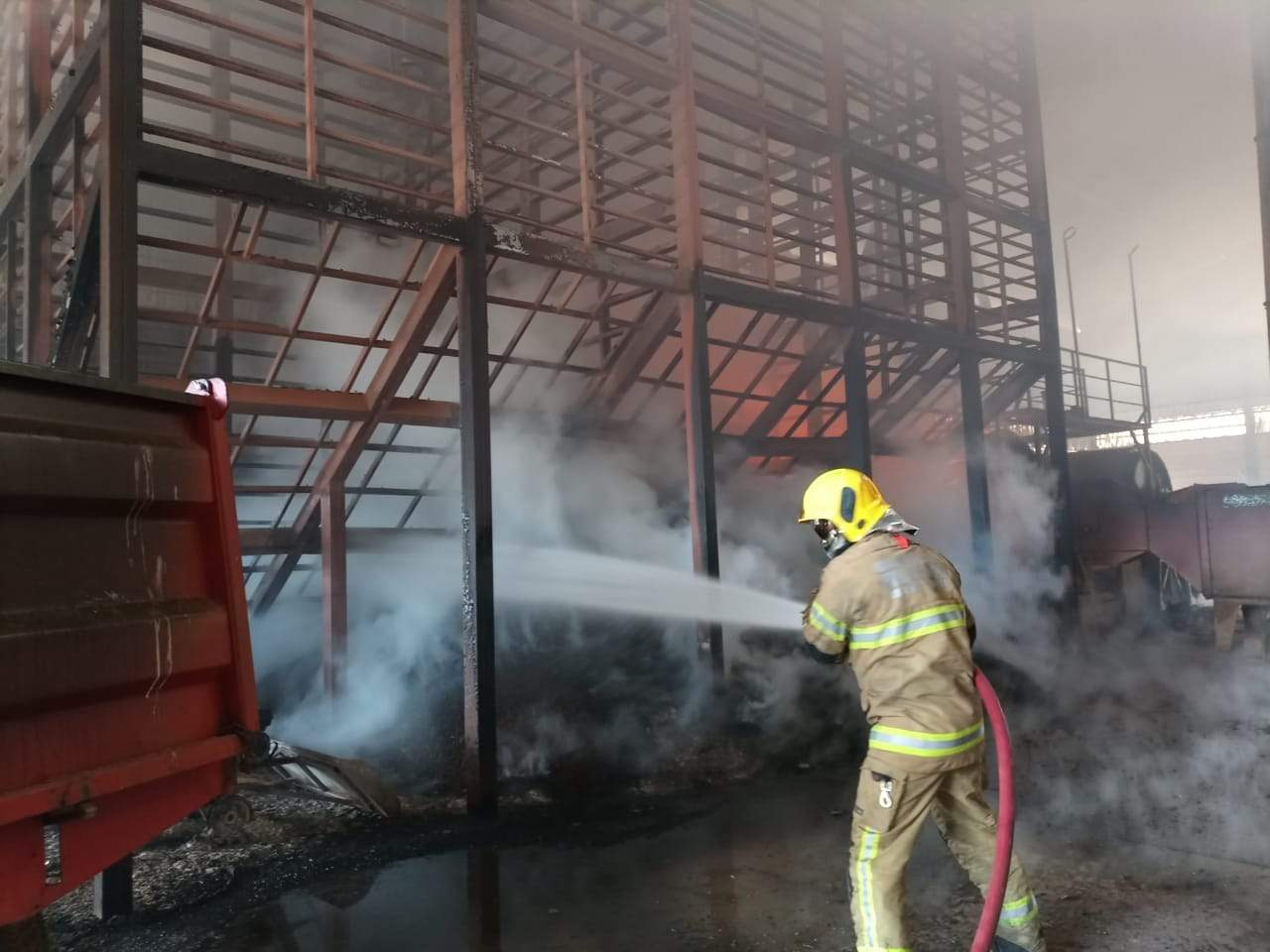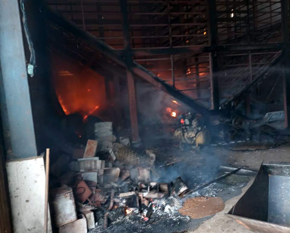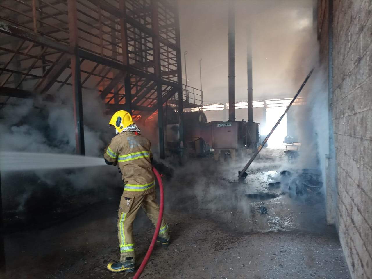 A equipe de Bombeiros da 2ª Companhia se deparou com um incêndio de proporções significativas. O fogo atingiu boa parte do maquinário e do café que armazenado. Parte da estrutura metálica do galpão também cedeu em razão do forte calor. Havia chamas altas e grande quantidade de fumaça no ambiente.