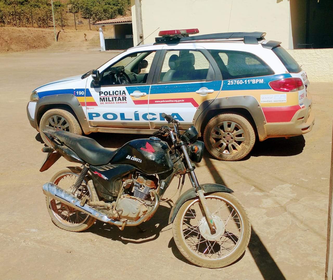 O veículo foi localizado e, após levantamentos, constatou-se que a motocicleta havia sido furtada em 25/06/2021, na zona rural de Reduto.
