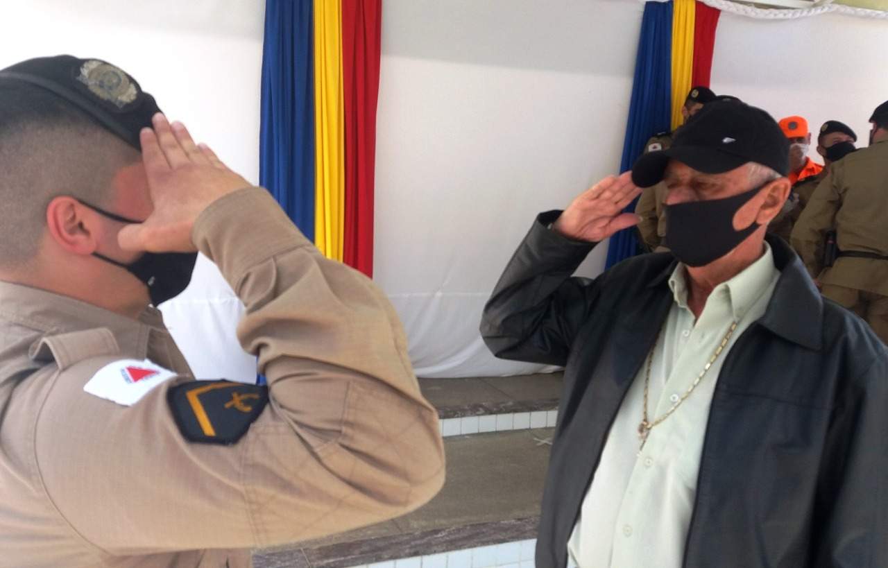No decorrer da homenagem, o jovem PM Linhares prestou continência ao exemplar avô, em símbolo de respeito e admiração por sua trajetória junto à gloriosa Polícia Militar, especialmente o 11º BPM – A Sentinela do Caparaó.