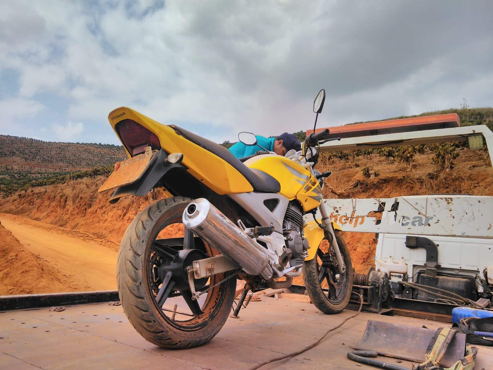 A equipe deparou com o veículo caído em um barranco fora da estrada, com a chave na ignição. Foi constatado tratar-se da moto roubada no dia 12/08, no córrego das Nascentes.