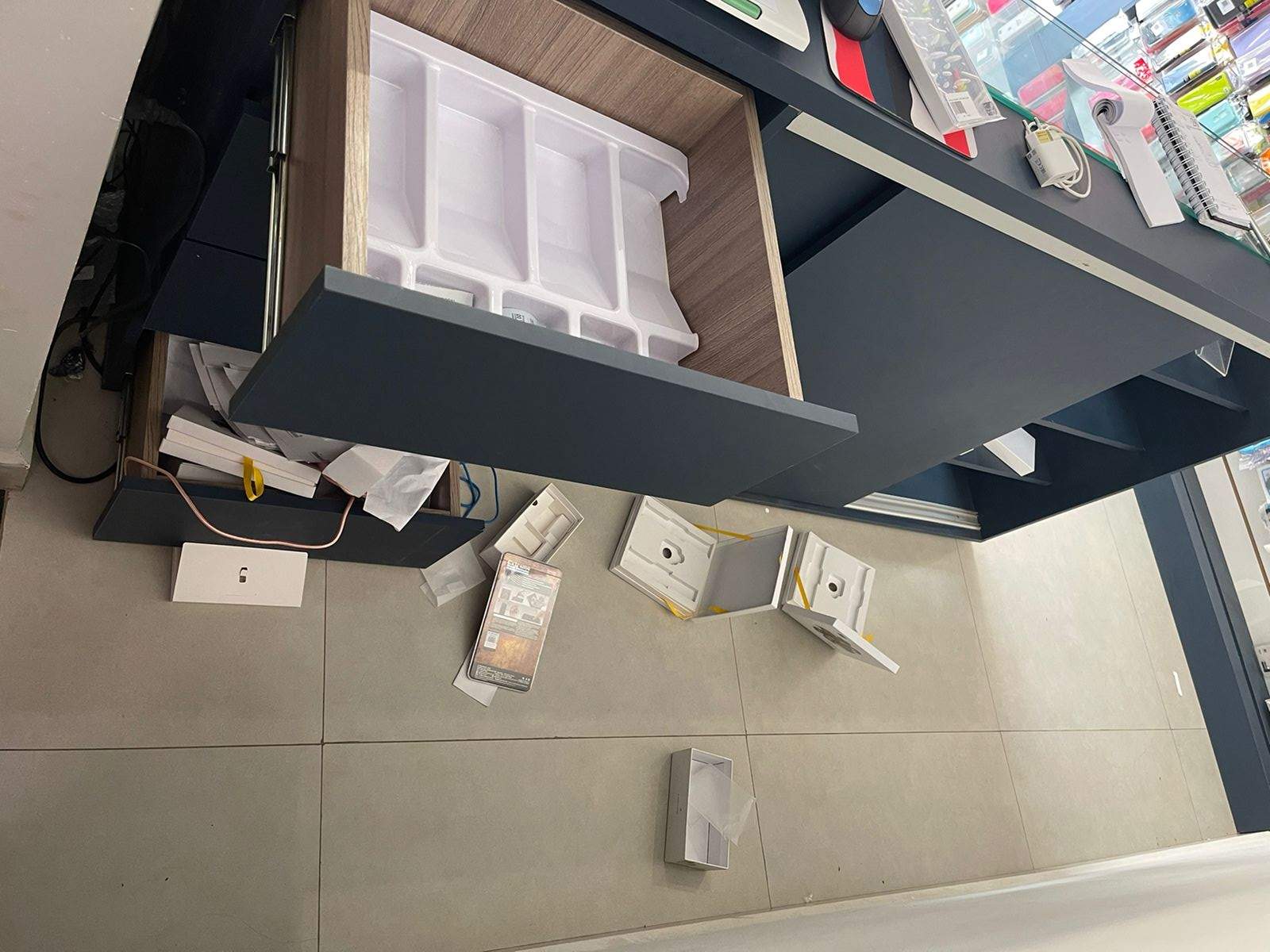 Conforme as câmeras de segurança de uma das lojas, os dois rapazes chegaram por volta de 1h30 da madrugada. Eles arrombaram as trancas da porta e conseguiram acessar as lojas. Foram levados dinheiro do caixa, alguns produtos, como relógios e acessórios. Felizmente, materiais mais caros não ficam em exposição no local.