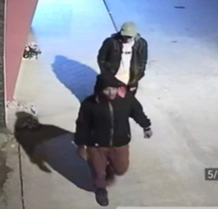 Pelas imagens, os dois autores chegam, fazem o arrombamento e saem à pé. Não foi possível visualizar algum veículo.