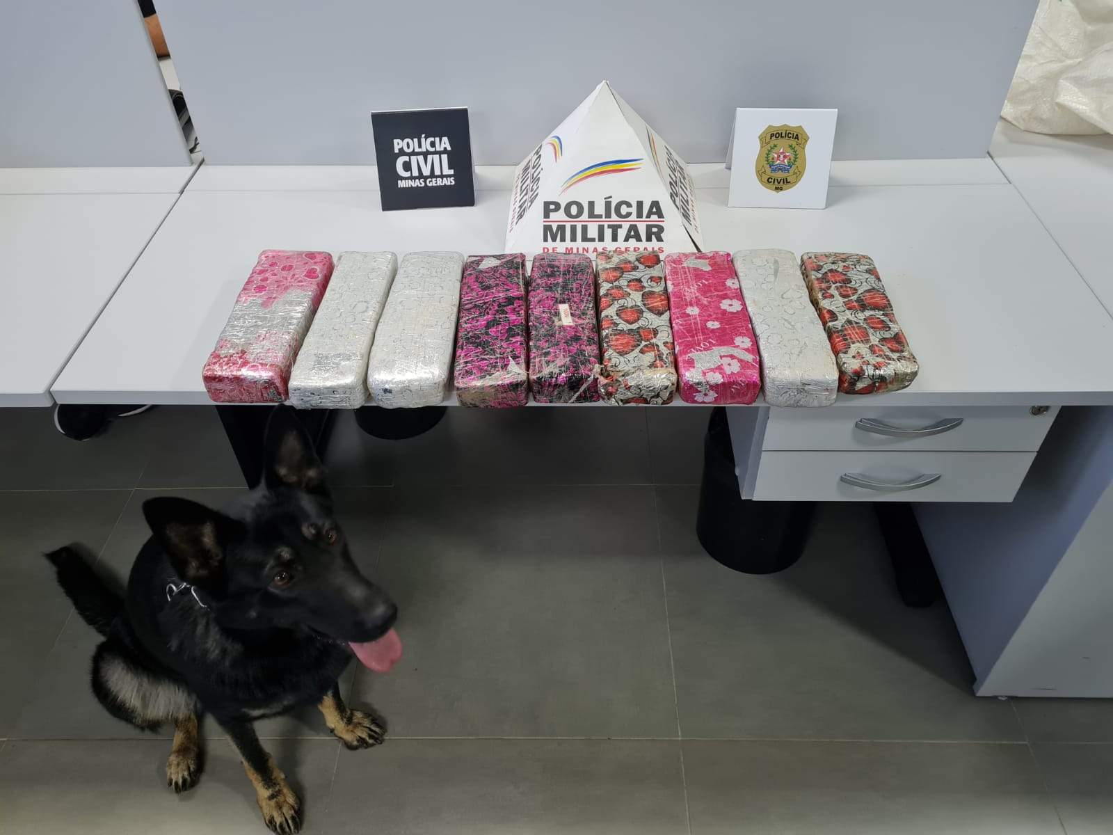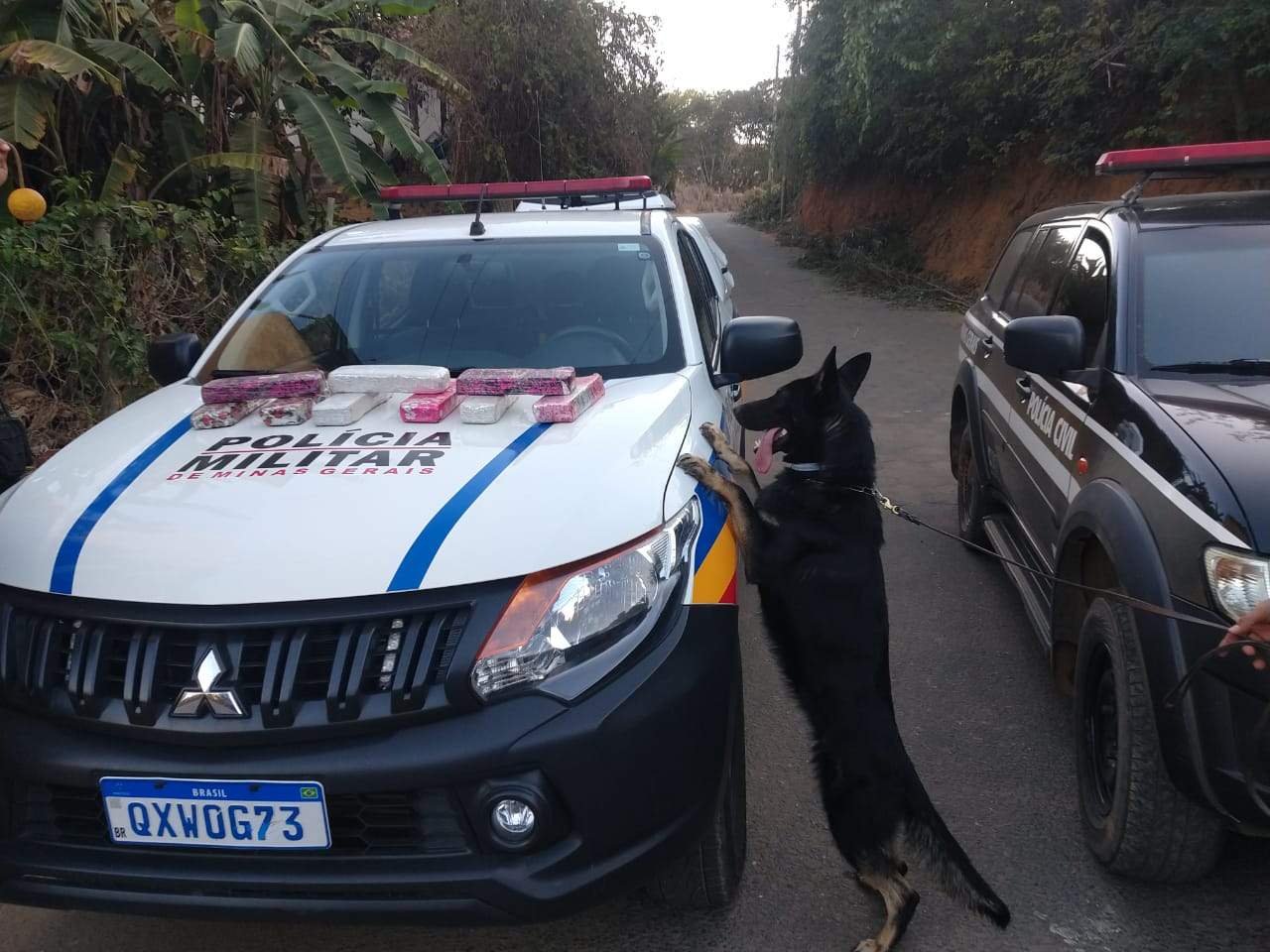 MANHUAÇU (MG) - Operação conjunta da Polícia Civil de Manhuaçu com a equipe de Rondas com Cães (Rocca) do 11º Batalhão de Polícia Militar apreendeu nove barras de maconha. A ocorrência foi nesta segunda, 23/08.