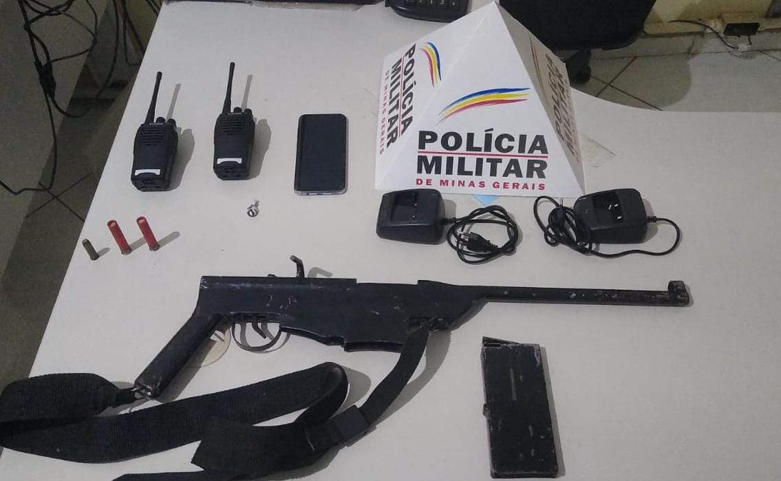 As equipes deslocaram até a residência no Córrego Pirapetinga onde fizeram contato com um dos denunciados e durante as buscas foram localizadas 01 arma de fogo calibre 36 com carregador alongado, 02 munições calibre 36, 01 munição calibre 38, 01 porção de cocaína e 02 rádios comunicadores.