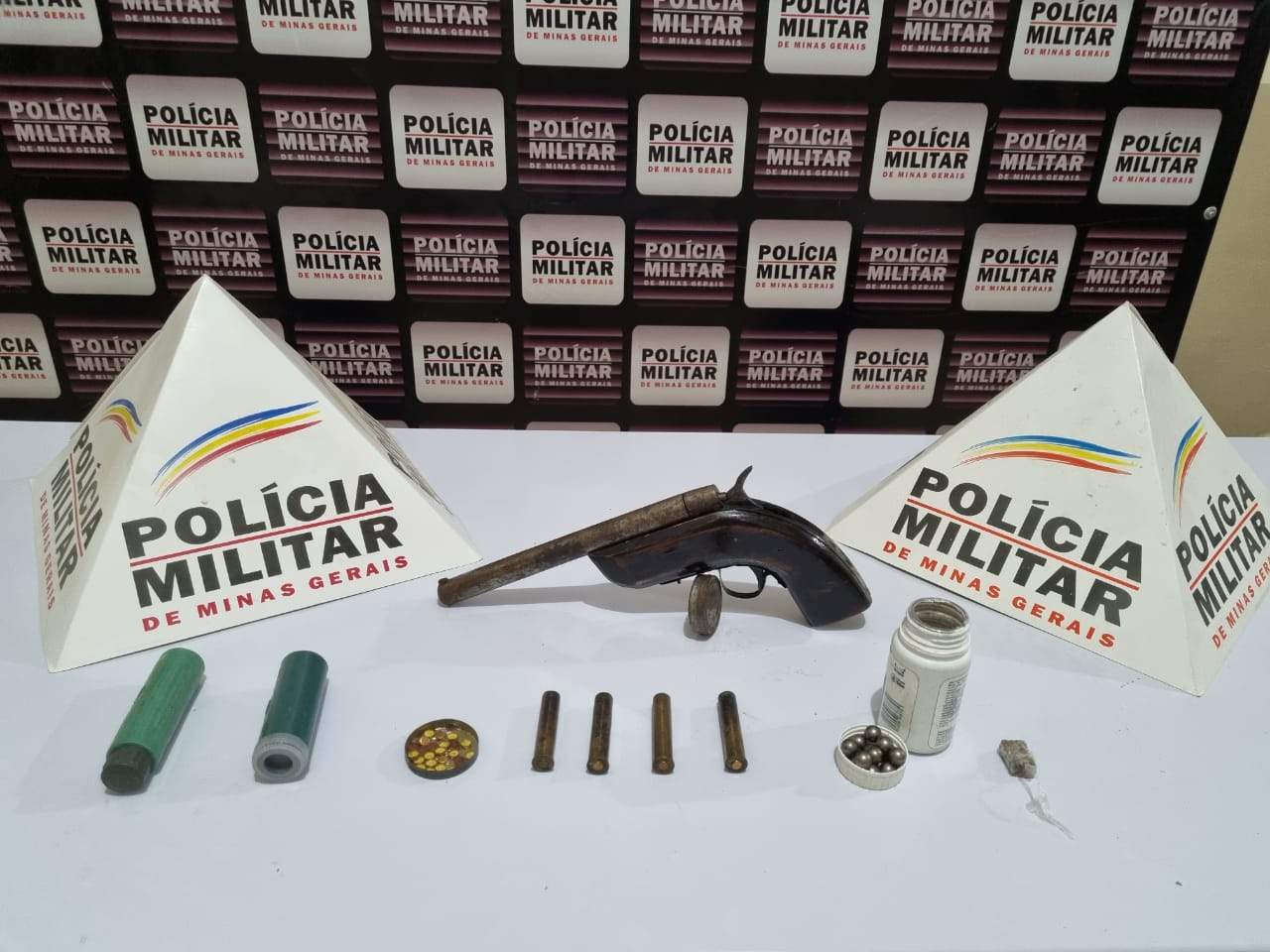 Ao perceber a presença policial, o homem de 31 anos tentou fugir, porém foi alcançado e abordado. Foram localizadas 01 bucha de maconha, 01 arma de fogo, tipo garruchão de fabricação artesanal, 04 munições, além de vários materiais para recarga de cartuchos.