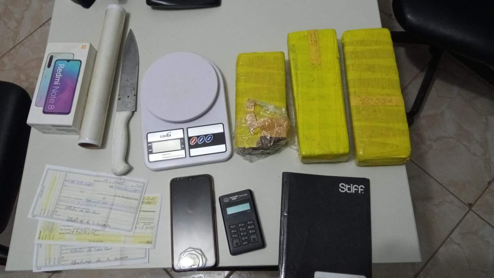 Os agentes então seguiram para a casa da família e prenderam os outros três suspeitos. No imóvel, os policiais encontraram três tabletes de maconha e material para embalar as drogas.