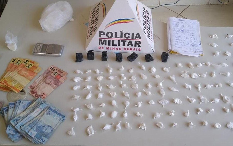 Durante as buscas foram localizados sete tabletes de maconha, 113 papelotes e um tablete de cocaína, balança de precisão e R$563,00.